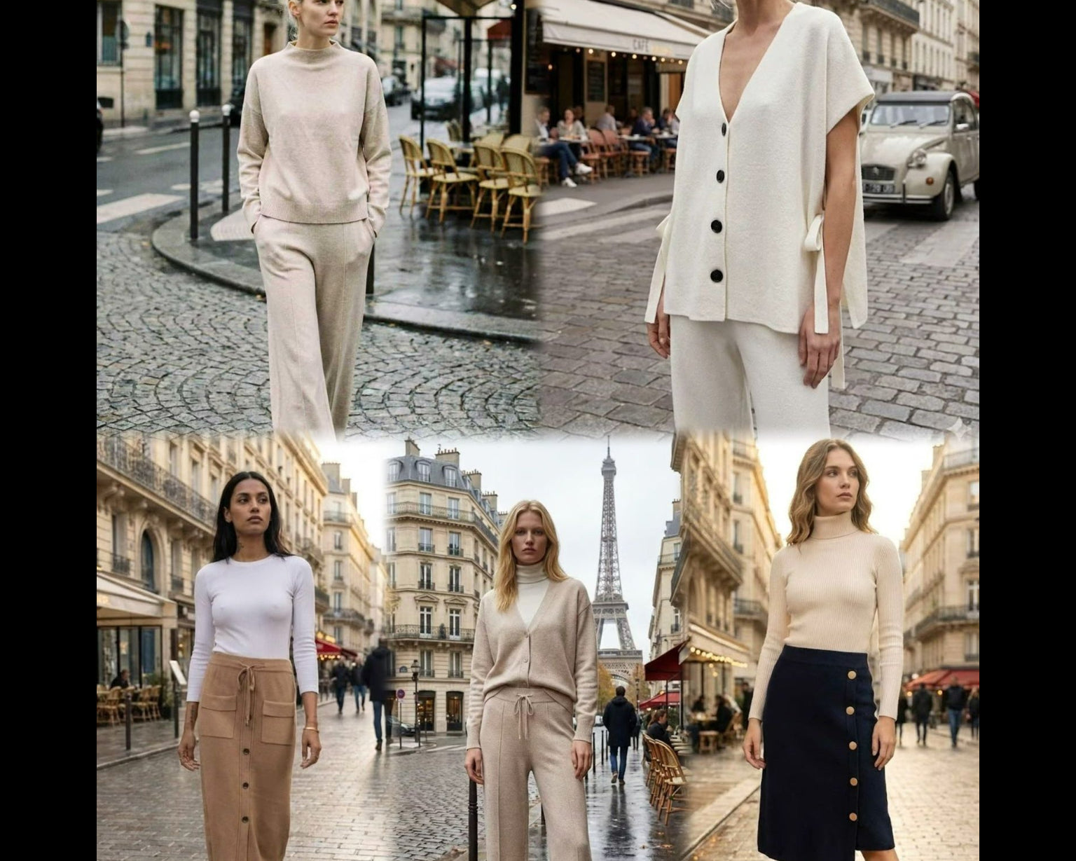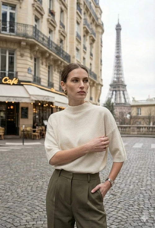 Pull en maille beige à col montant et couture centrale